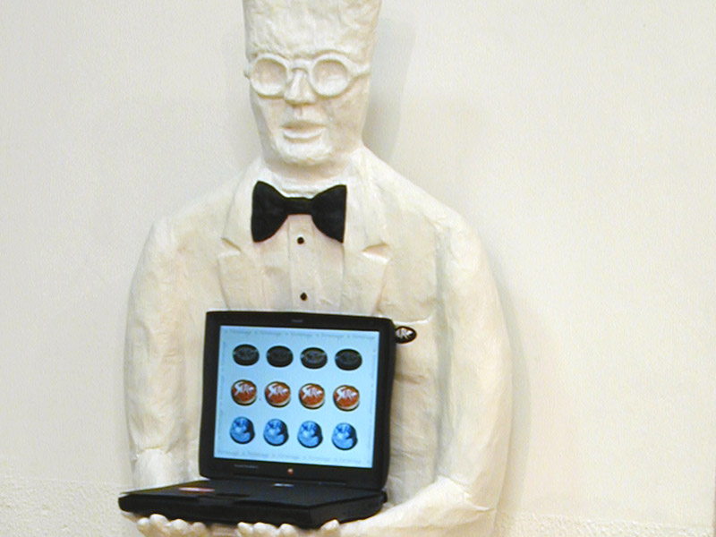 È la prima performance milanese di Serz, che con l’aiuto di un cameriere improprio affianca il classico buffet dell’inaugurazione con l’offerta al pubblico di pasticcini virtuali.